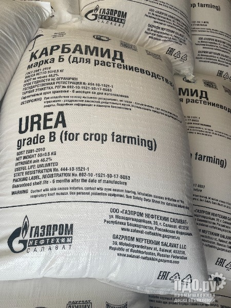 2. Карбамид ГОСТ 2081-2010, от 27000, 00 р/т марка А или марка Б, мешки по 50 кг или МКР 1000 кг. производство ООО «Газпром нефтехим Салават». В наличие есть (Карбамид некондиция) массовая доля азота – 46 %.